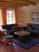 Das fußbodentemperierte Wohn- und Eßzimmer ist mit TV und DVD-Player, Stereoanlage mit CD-Player, Büchern und diversen Spielen ausgestattet.