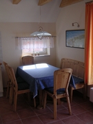 Die Eßecke befindet sich im Küchenbereich und bietet für 6 Personen genügend Platz. Für die kleinen Gäste steht ein Kinderhochstuhl zur Verfügung.